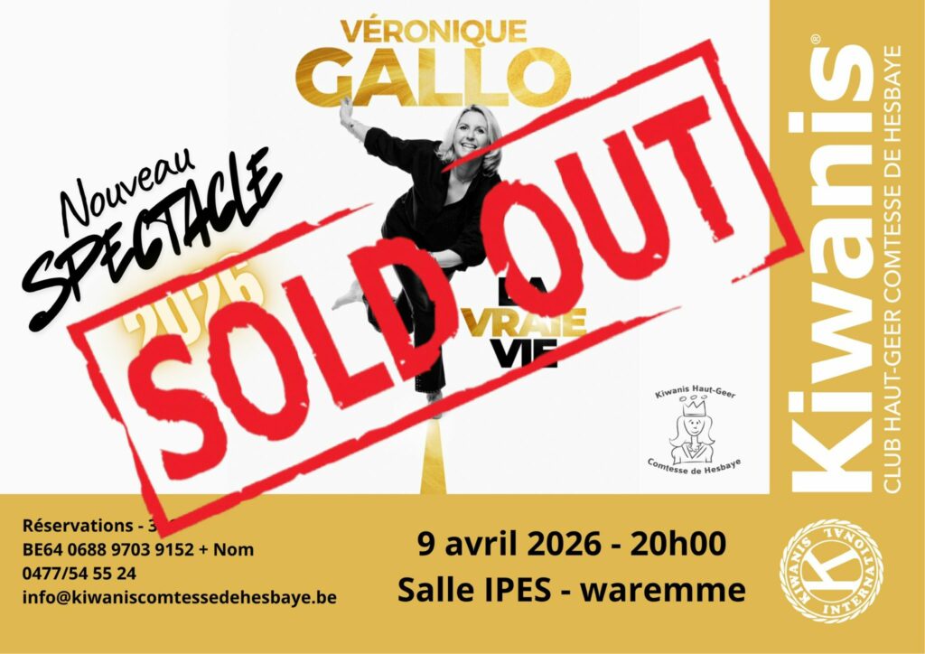 9 avril 2026 à 20h00 : Véronique GALLO                        Nouveau spectacle – “La vraie vie”-  IPES Waremme –    SOLD OUT !